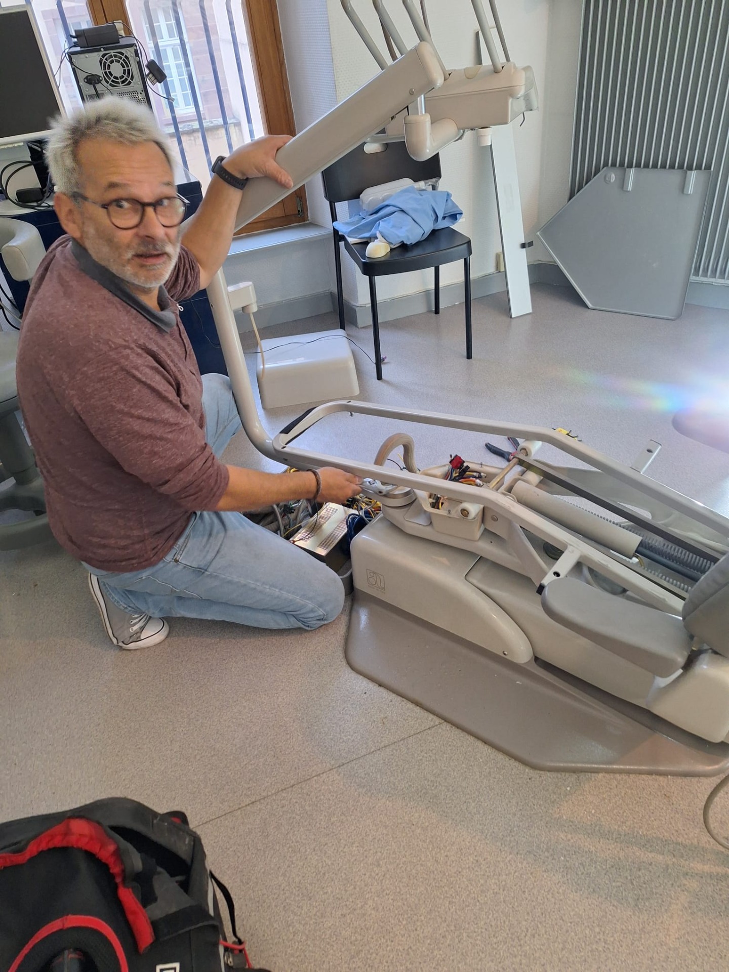 L'équipe logistique était à Montbéliard pour récupérer l'équipement du cabinet dentaire de Françoise Chanois et Didier Guillaume. Prenant leur retraite, ils ont fait le choix d'en faire don à UKRaide. Nous les remercions vivement pour leur générosité et leurs attentions : les bénévoles ont apprécié leur aide, la présence d'un technicienpour gérer correctement le matériel technique et même l'invitation au restaurant ! Les 2 fauteuils dentaires complets, le système de radiographie dentaire et le mobilier nous permettront d'équiper entièrement un cabinet dentaire en Ukraine.