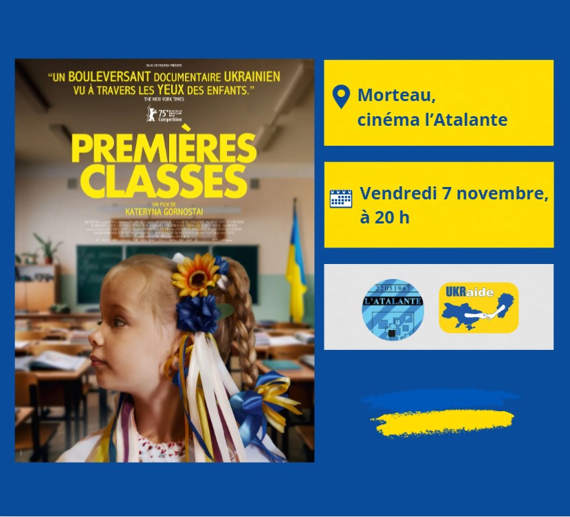 Le cinéma l'Atalante projettera le film Premières classes. "En Ukraine, maintenir les écoles ouvertes est devenu un acte de résistance. Sur la ligne de front ou dans des zones plus reculées, l'apprentissage continue malgré les alertes, les coupures d'électricité et les menaces constantes. Un témoignage précieux où chaque image raconte la ténacité et la dignité face au chaos". Merci à toute l'équipe de l'Atalante pour cette invitation !