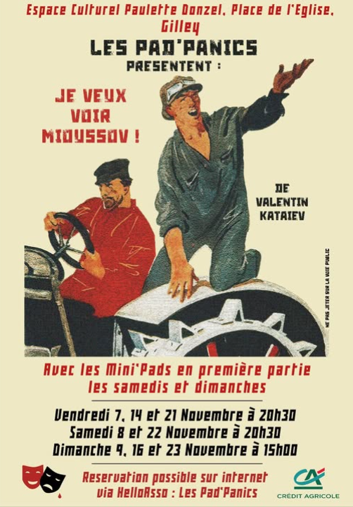 Les Pad'panics, troupe de théâtre joueront cette année une pièce comique : "Je veux voir Mioussof" écrite en 1947. Les bénéfices de la soirée seront reversés à UKRaide. Venez passer un bon moment à l'espace Paulette Donzel et découvrir notre association.