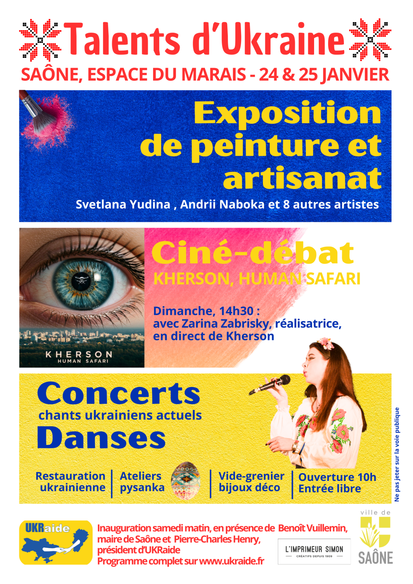 Une réunion publique d'information et de coordination se tiendra mercredi 9 mars à 18h dans la salle Guinemand à Saône. Cette réunion sera l'occasion de se mobiliser, mais aussi d'expliquer le partenariat entre UKRaide et la mairie de Saône ainsi que les démarches à suivre avec la Préfecture pour les familles souhaitant accueillir des réfugiés.